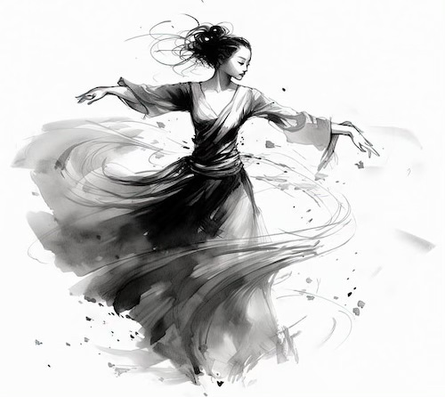 Whirling in dance, dizzyingly, in ecstasy, as in intoxication and dreaming and sleep/rest.